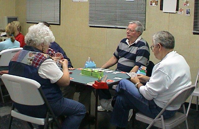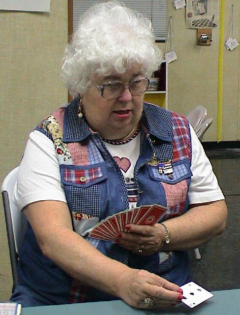 | Guylene Merrill dressed for Christmas | Yvonne Hamby thinking about the last hand. | ||